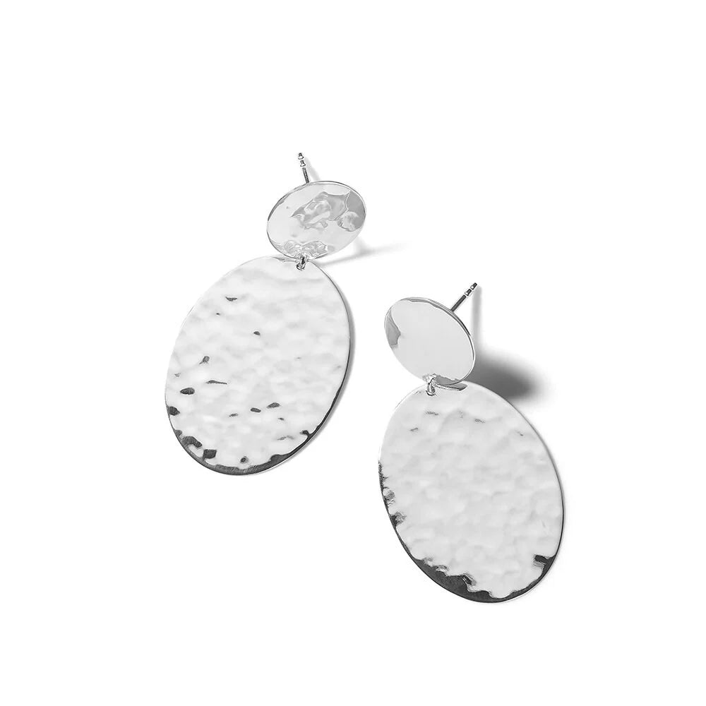 Crinkle Hammered Oval Snowman Earrings 925 silver