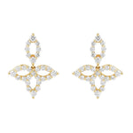 18K Yellow Gold Princess Diamond Flower Dangle Earrings