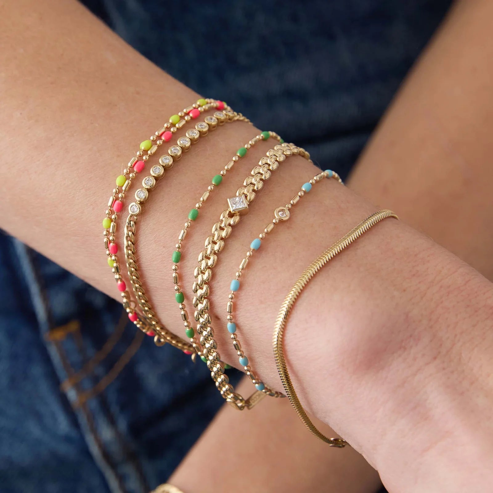 14k Floating Diamond Gold & Turquoise Enamel Tube Bar Chain Bracelet