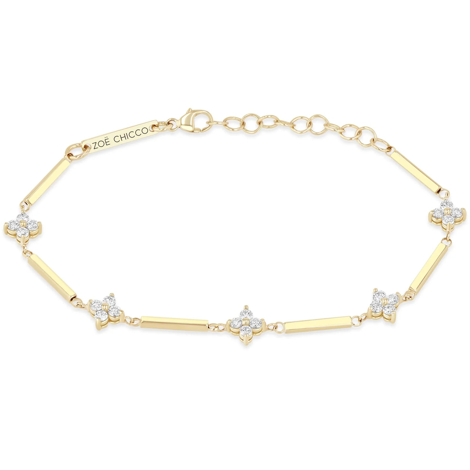 14k Prong Diamond Quad Station Linked Bar Bracelet