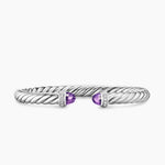 David Yurman’s artistic signature, Cable began as a bracelet that he hand-twisted from 50 feet of wire. For the past 30 years, he has evolved the twisted helix into a myriad of designs. Sterling silver Amethyst Pavé set diamonds, 0.13 total carat weight Bracelet, 6mm Nitinol core to provide flex movement. Style #B18729DSSAAMDI UPC 192740580192