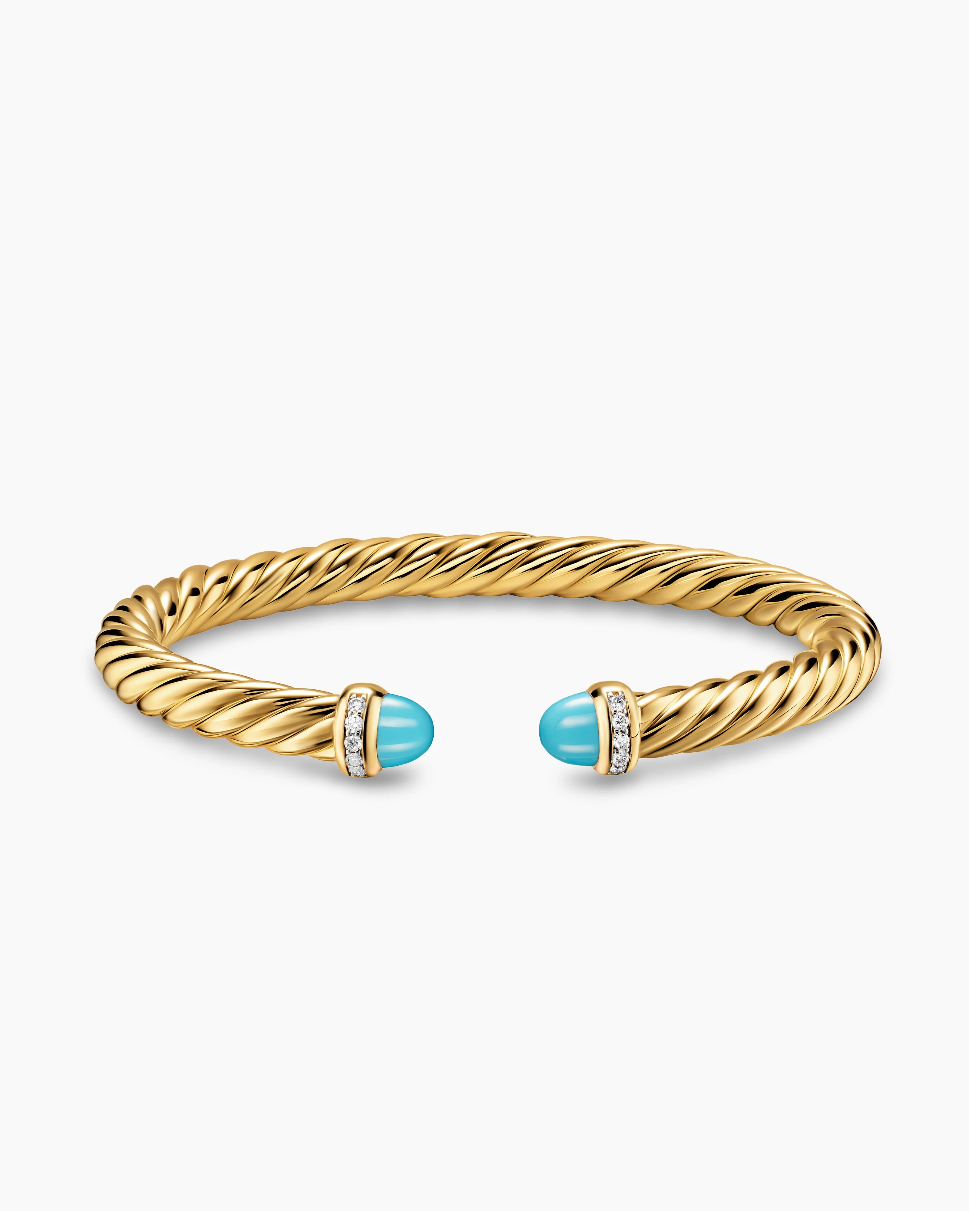 CABLESPIRA® FLEX BRACELET 18K Yellow Gold with Turquoise and Diamonds, 6mm