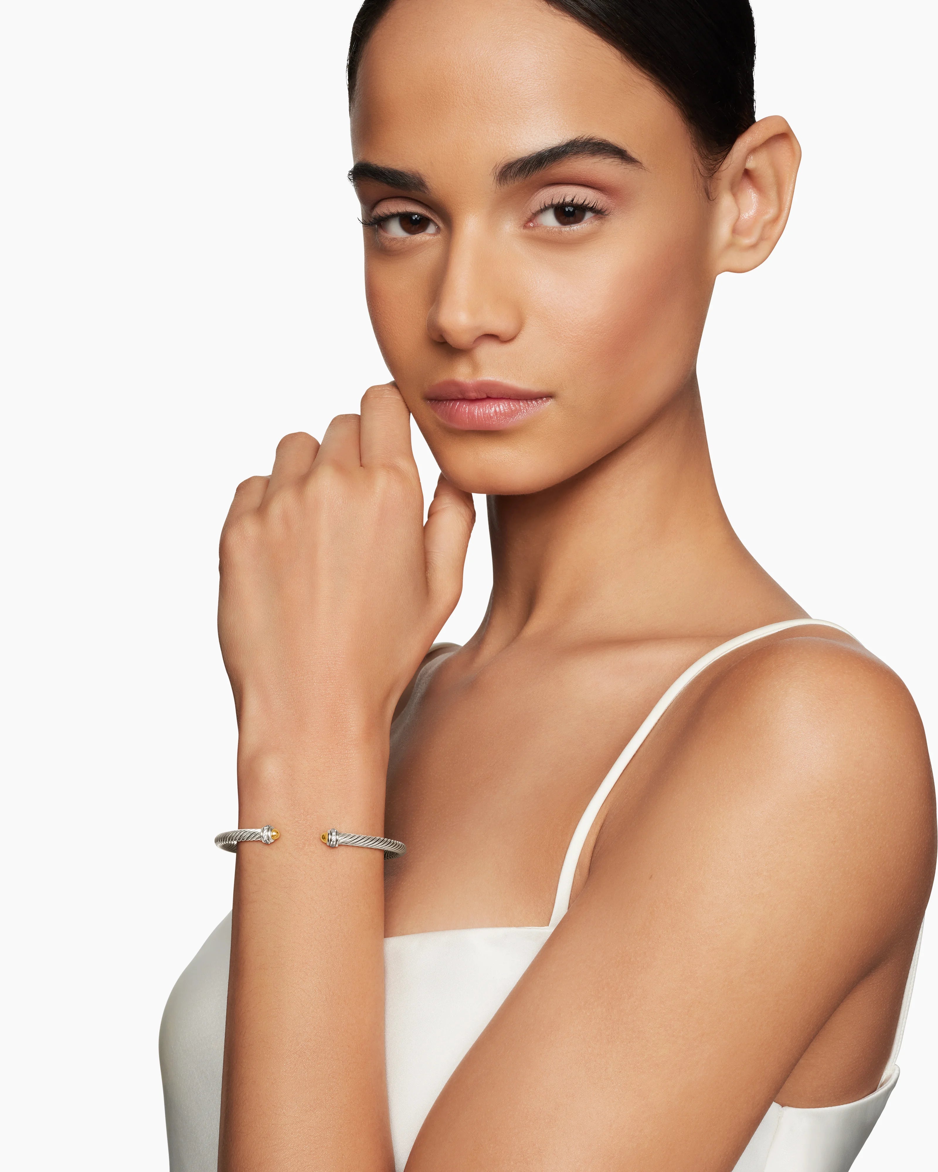 CLASSIC CABLE BRACELET Sterling Silver with 18K Yellow Gold Domes and Diamonds, 4mm
