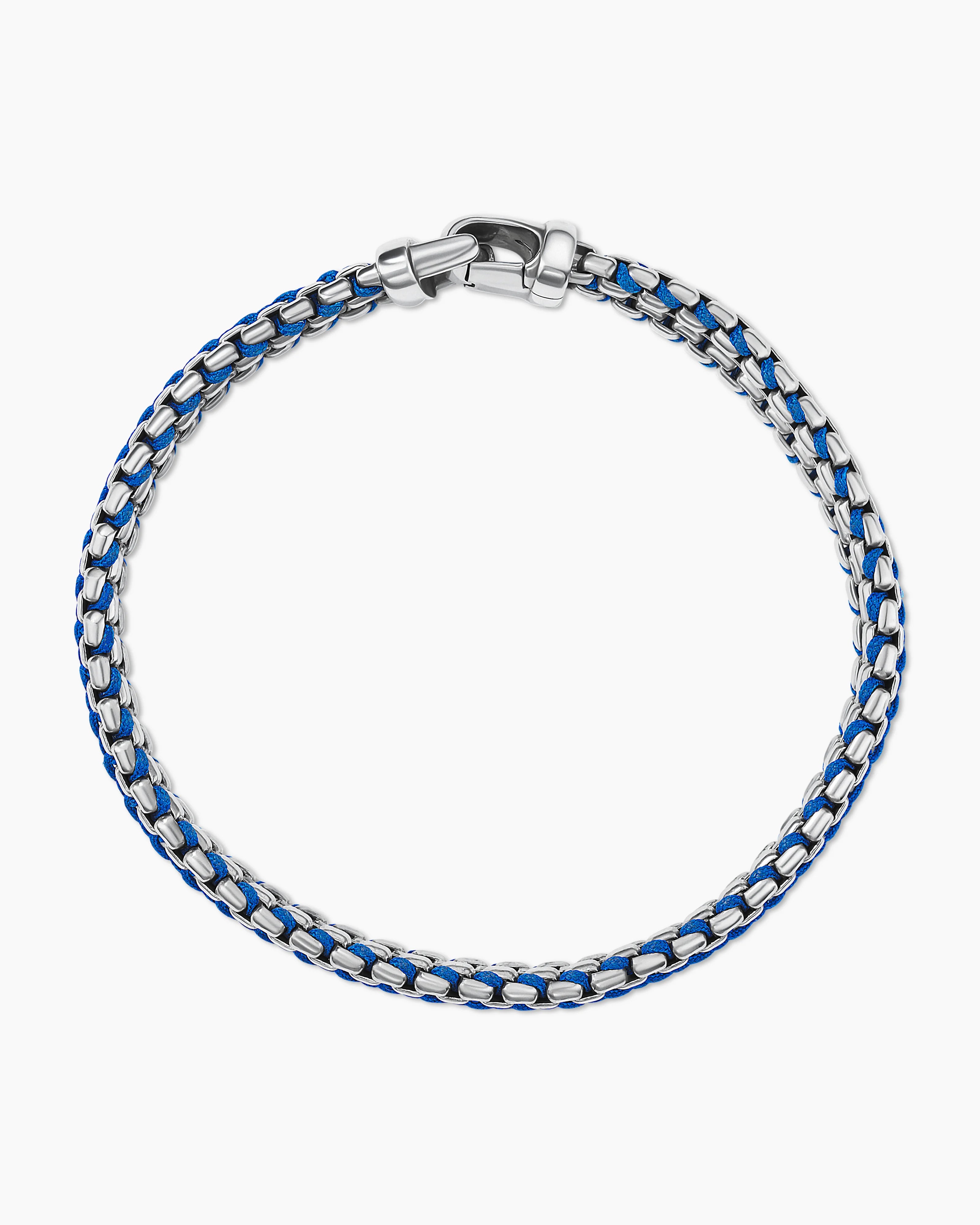 WOVEN BOX CHAIN BRACELET Sterling Silver with Blue Nylon, 10mm