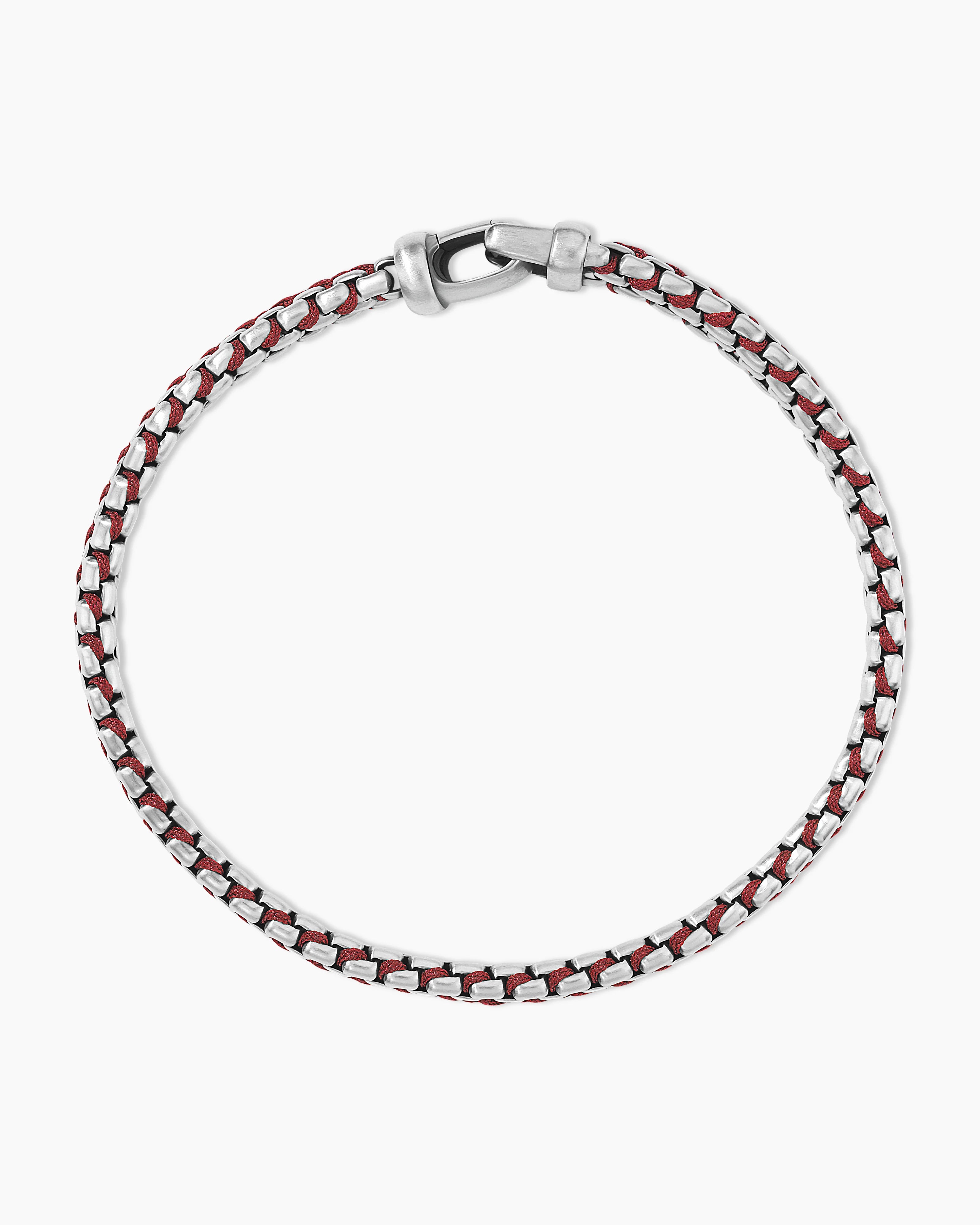 WOVEN BOX CHAIN BRACELET Sterling Silver with Red Nylon, 10mm
