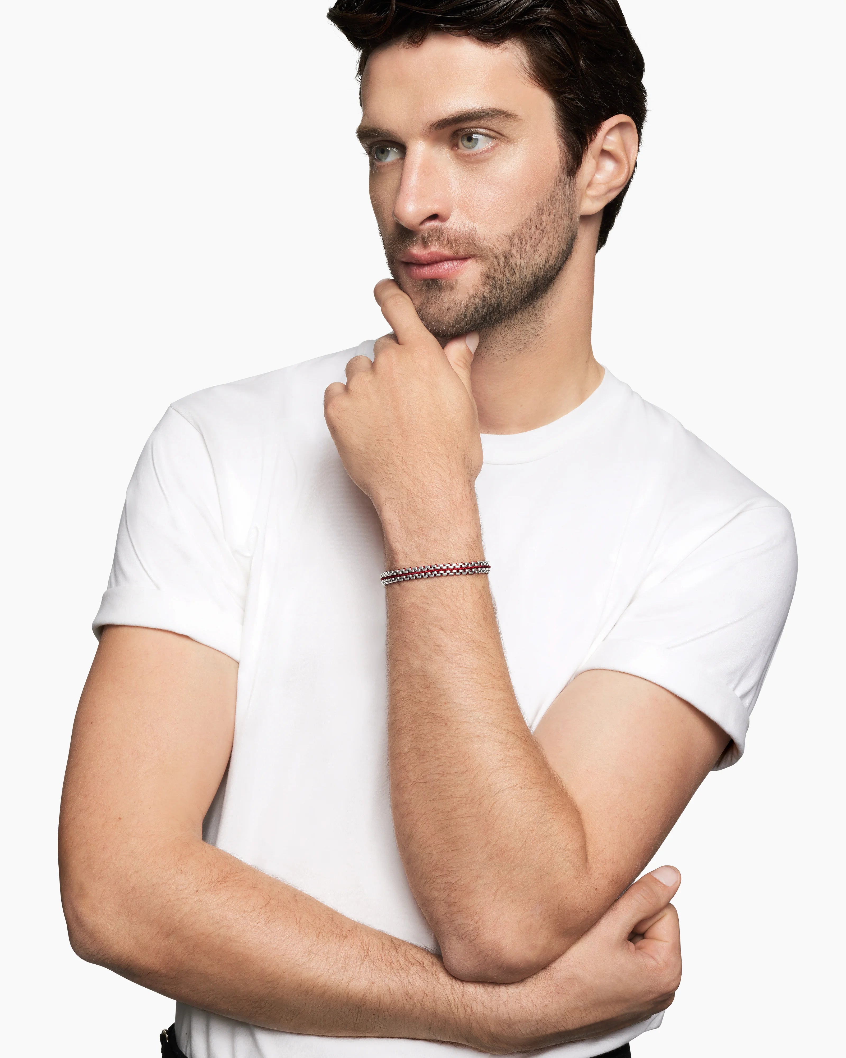 Inspired by classical and original motifs, David Yurman chain necklaces and bracelets showcase masterful craftsmanship, with sculptural links carved and assembled for seamless movement. Ideal for layering, these timeless chains are the foundation of a jewelry collection, whether worn alone or paired with a pendant. Sterling silver Red nylon Bracelet, 10mm Push clasp Style #B15884MSSRD 883932945935