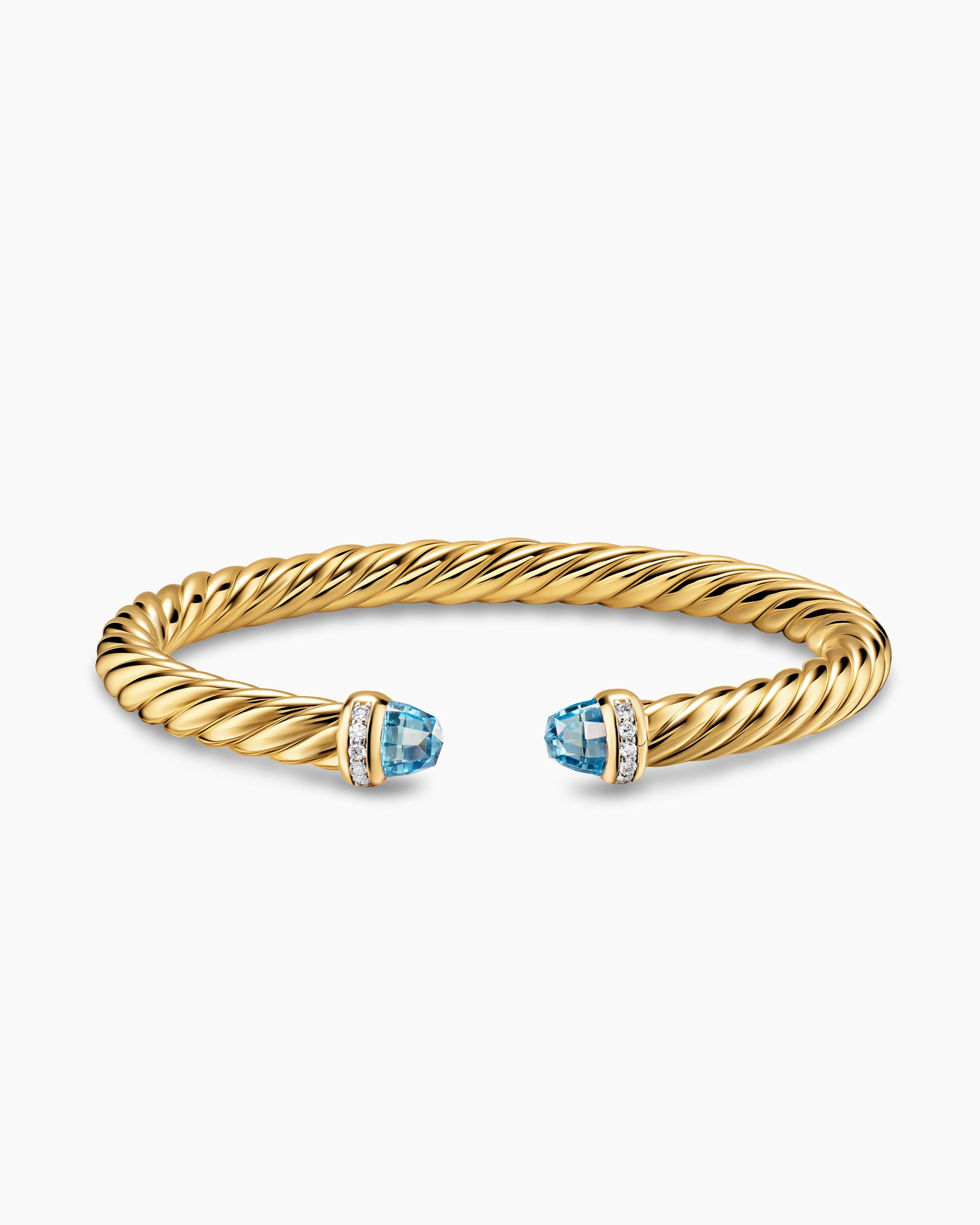 CABLESPIRA® FLEX BRACELET 18K Yellow Gold with Blue Topaz and Diamonds, 6mm
