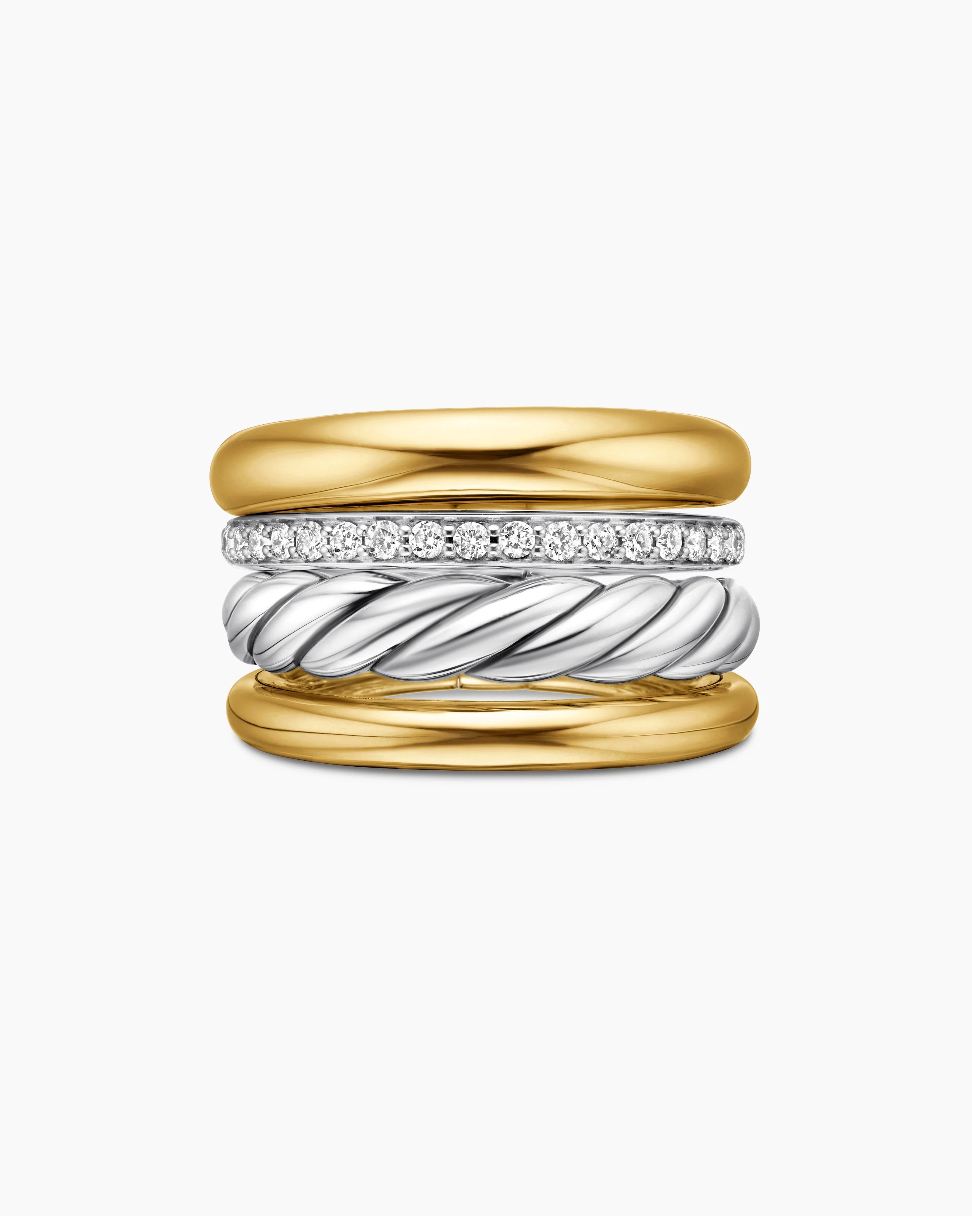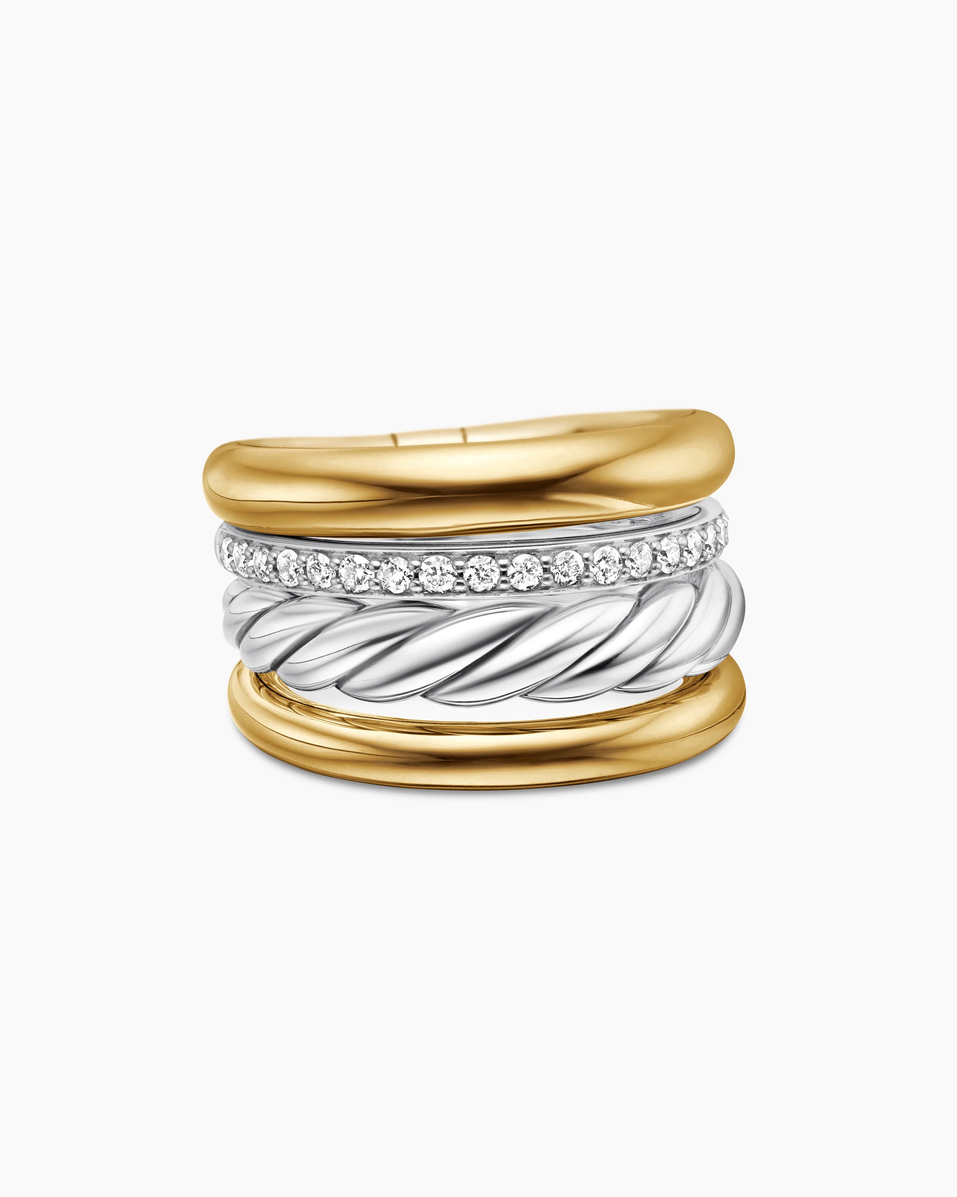 DY MERCER® FOUR ROW RING Sterling Silver with 18K Yellow Gold and Diamonds, 13.8mm