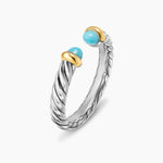 PETITE CABLE OPEN RING Sterling Silver with 14K Yellow Gold and Turquoise, 3.4mm