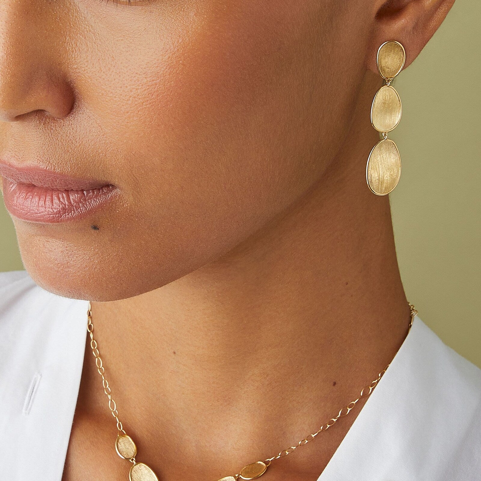 18K Yellow Gold Lunaria 3 Drop Petal Earrings