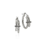 Sterling Silver Spear Hoop Earrings with Black Sapphires, 22.5mm