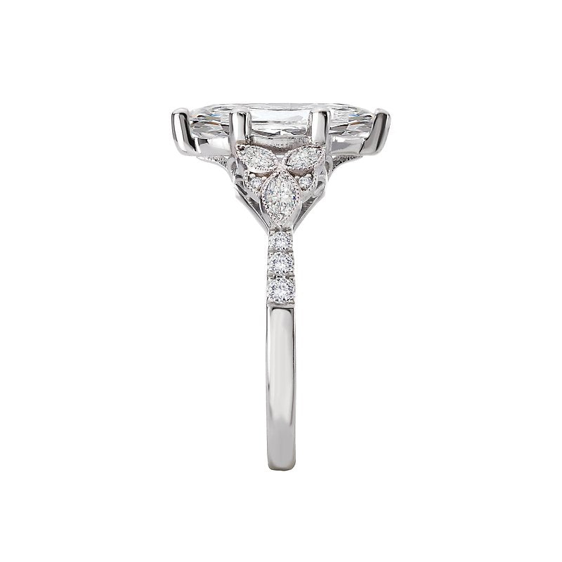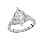 This 14K white gold semi-mount engagement ring features a striking design with a trio of marquise-cut diamonds on each side, creating an elegant, elongated silhouette. The center setting is crafted to accommodate a 12.5x6.5mm marquise-cut stone, making it perfect for those who love a refined and flattering look.