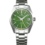 A verdant bamboo garden path inspires the dynamic "Urban Bamboo" dial of SBGJ259. It features a dramatic striated pattern that oscillates between different tones of green, evoking the vertical lines and organic coloration of the bamboo garden path. Powering the watch is the Hi-Beat Caliber 9S86, which runs at 36,000 bph, delivers an accuracy of +5 to -3 seconds a day, and offers 55 hours of power reserve. A GMT function allows the user to track an additional time zone, making SBGJ259 an excellent timepiece for frequent travelers. SBGJ259 is a U.S. Special Edition.