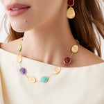 18K Yellow Gold Lunaria Collar Necklace with Mixed Gemstones
