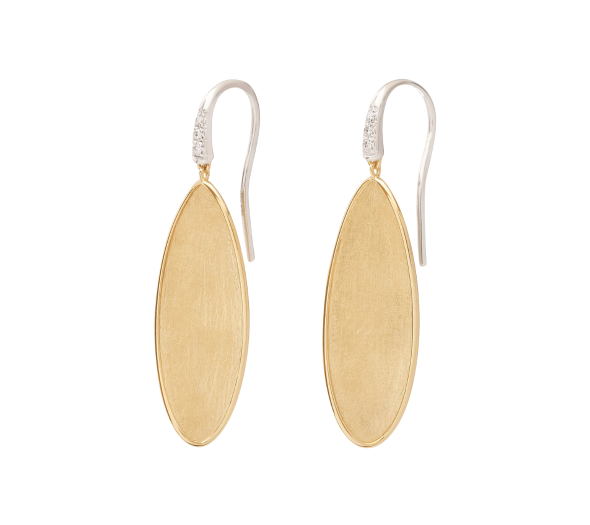 18K Yellow Gold Petal Drop Earrings With Diamond Hook