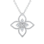 18K White Gold Princess Flower Diamond Pendant Necklace