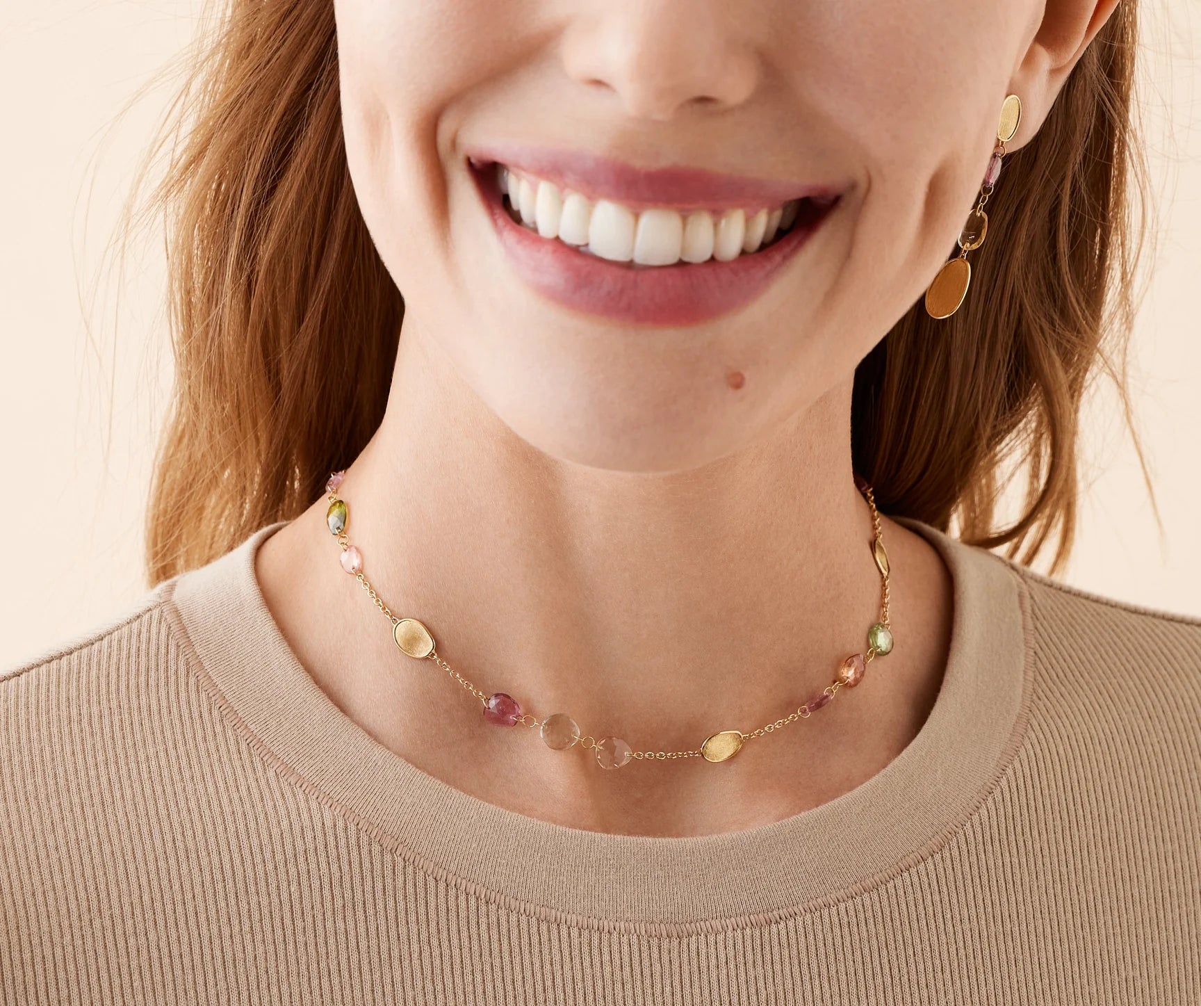 18K Yellow Gold Lunaria Tourmaline Necklace