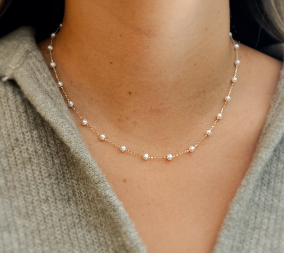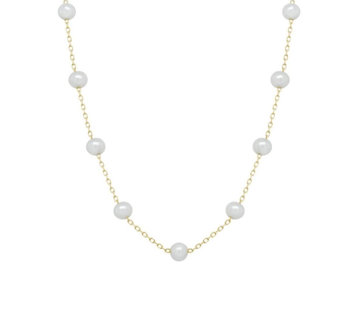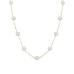 4mm Pearl Station Necklace on 14k Yellow Gold Chain
