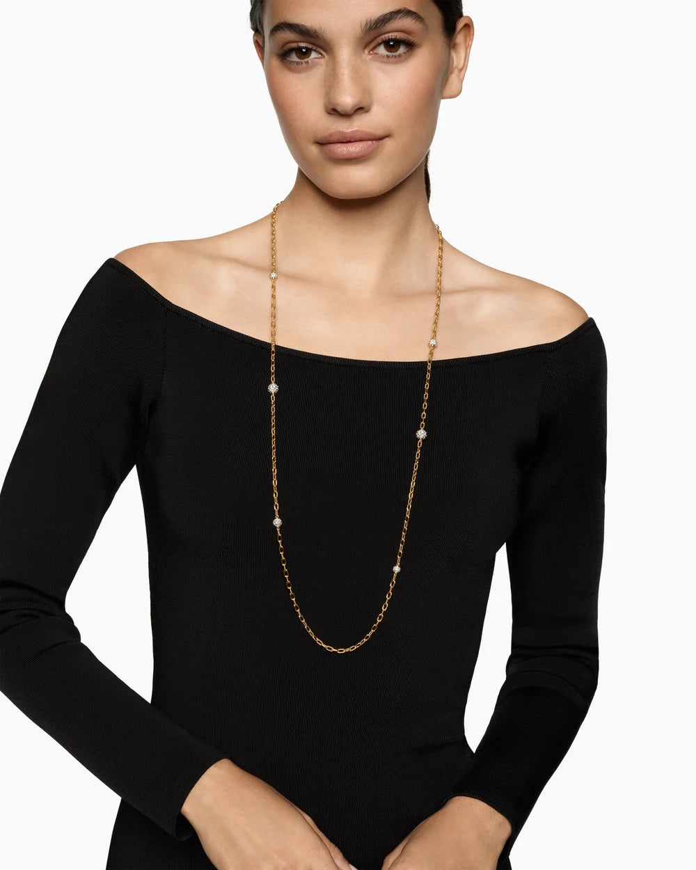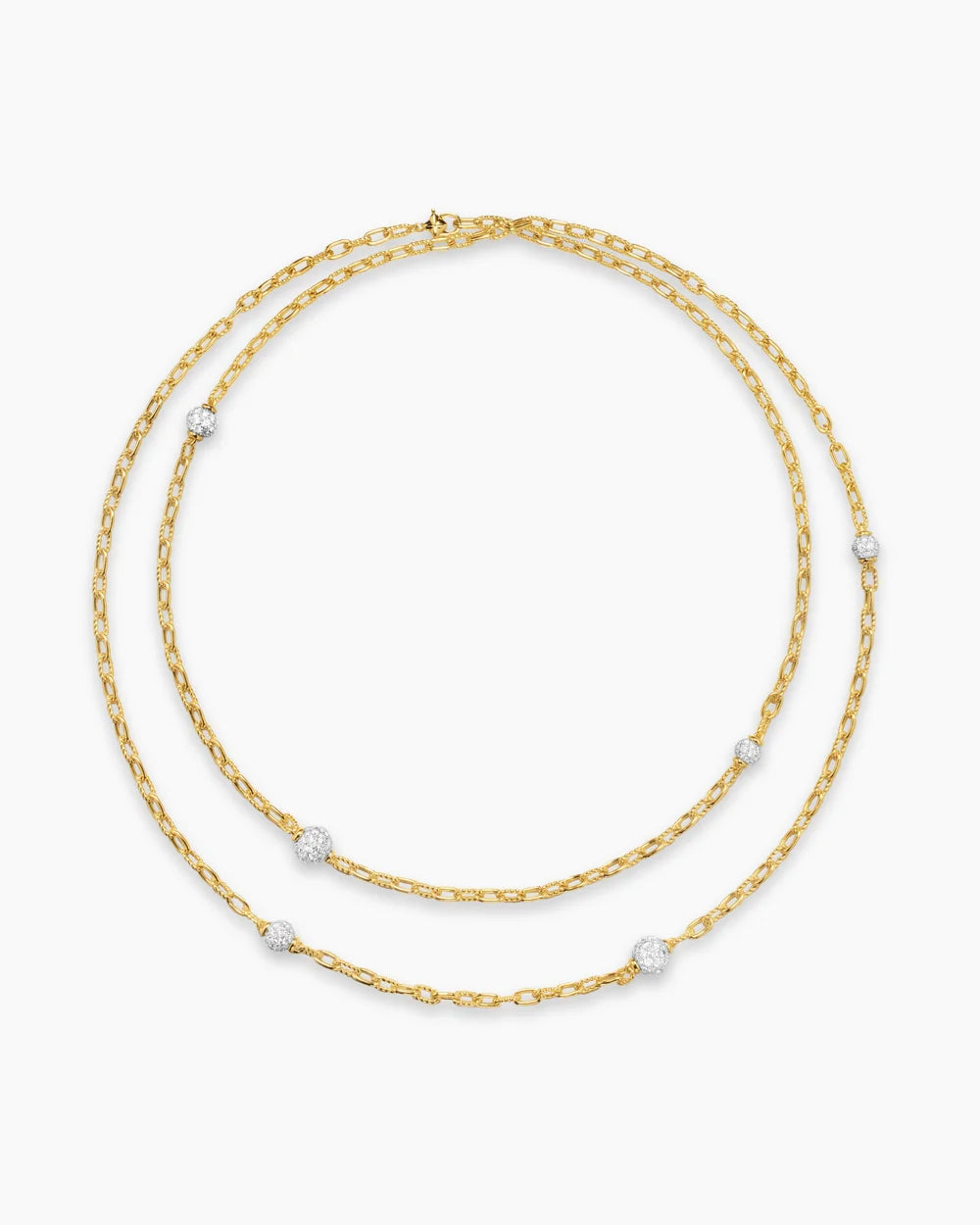 DY Madison® Pavé Bead Station Necklace 18K Yellow Gold with Diamonds, 3mm