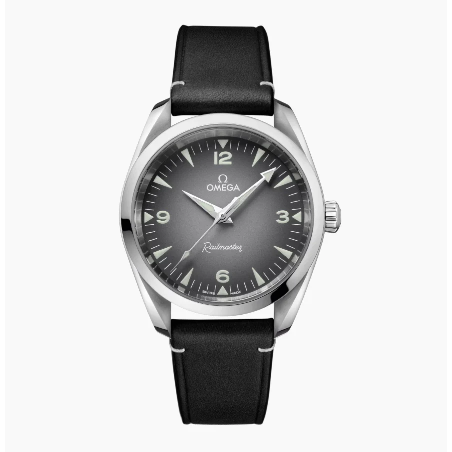 Seamaster Railmaster Steel Grey Dial Leather Strap 38mm