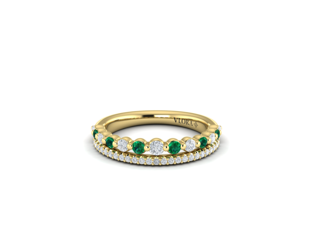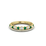 18K Yellow Gold Diamond and Emerald Two Row Ring
