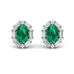 18K Yellow Gold Oval Emerald & Diamond Baguette Earrings