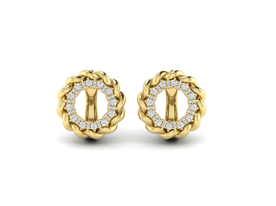 18K Yellow Gold Twisted Circle Pavé Diamond Earrings