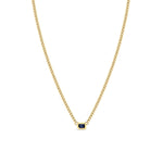 14k Emerald Cut Blue Sapphire Bezel XS Curb Chain Necklace