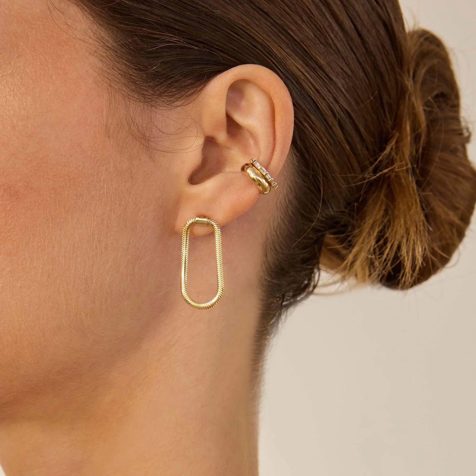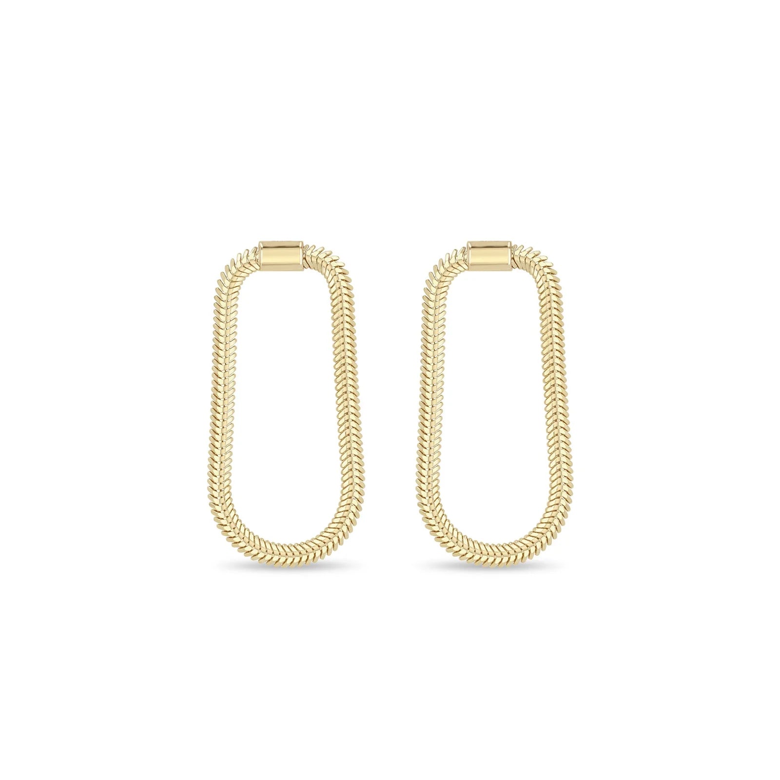 14k Gold Small Oval Snake Chain Hoop Earrings