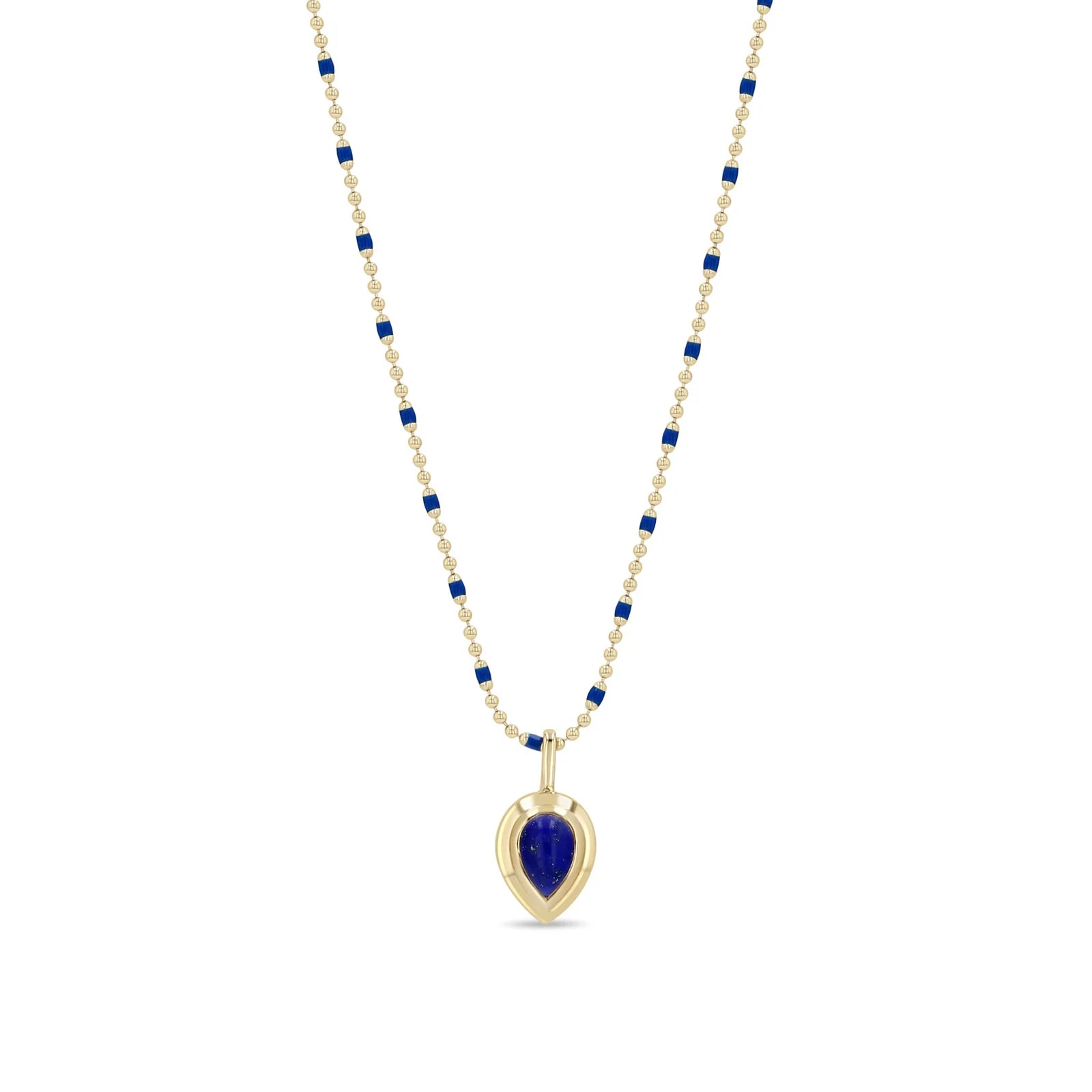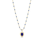 14k Pear Lapis Bezel Pendant Enamel Tube Bar Chain Necklace
